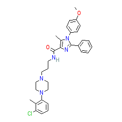 | SMILES | COc1ccc(-n2c(-c3ccccc3)nc(C(=O)NCCCN3CCN(c4cccc(Cl)c4C)CC3)c2C)cc1 |