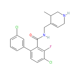 | SMILES | CC1CNCC=C1CNC(=O)c1c(-c2cccc(Cl)c2)ccc(Cl)c1F |