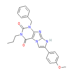 | SMILES | CCCn1c(=O)c2c(nc3[nH]c(-c4ccc(OC)cc4)cn32)n(Cc2ccccc2)c1=O |