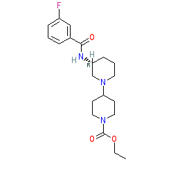| SMILES | CCOC(=O)N1CCC(N2CCC[C@@H](NC(=O)c3cccc(F)c3)C2)CC1 |