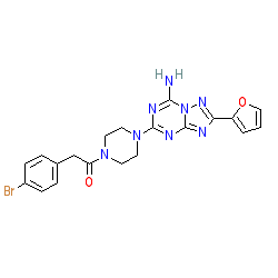 | SMILES | Nc1nc(N2CCN(C(=O)Cc3ccc(Br)cc3)CC2)nc2nc(-c3ccco3)nn12 |