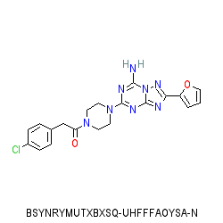 | SMILES | Nc1nc(N2CCN(C(=O)Cc3ccc(Cl)cc3)CC2)nc2nc(-c3ccco3)nn12 |