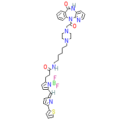 | SMILES | O=C(CCc1ccc(n1B(F)F)/C=C/1\C=CC(=N1)c1cccs1)NCCCCCCN1CCN(CC1)CC(=O)n1c2ccccc2c(=O)[nH]c2c1nccc2 |