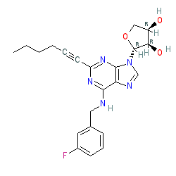 | SMILES | CCCCC#Cc1nc(NCc2cccc(F)c2)c2ncn([C@@H]3OC[C@@H](O)[C@H]3O)c2n1 |