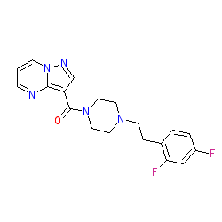 | SMILES | O=C(c1cnn2cccnc12)N1CCN(CCc2ccc(F)cc2F)CC1 |