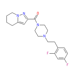 | SMILES | O=C(c1cc2n(n1)CCCC2)N1CCN(CCc2ccc(F)cc2F)CC1 |