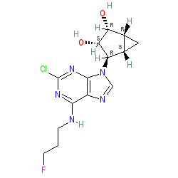 | SMILES | O[C@@H]1[C@H](O)[C@@H]2C[C@@H]2[C@H]1n1cnc2c(NCCCF)nc(Cl)nc21 |