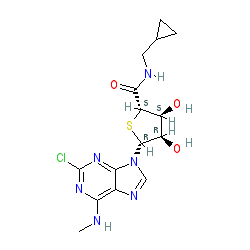 | SMILES | CNc1nc(Cl)nc2c1ncn2[C@@H]1S[C@H](C(=O)NCC2CC2)[C@@H](O)[C@H]1O |