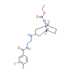 | SMILES | CCOC(=O)N1[C@H]2CC[C@@H]1CC(NCCNC(=O)c1ccc(C)c(F)c1)C2 |