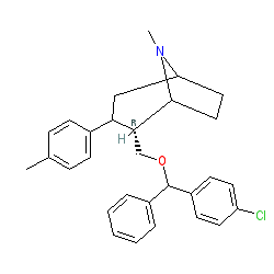 | SMILES | Cc1ccc(C2CC3CCC([C@@H]2COC(c2ccccc2)c2ccc(Cl)cc2)N3C)cc1 |