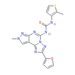 | SMILES | Cc1sccc1NC(=O)Nc1nc2nn(C)cc2c2nc(-c3ccco3)nn12 |