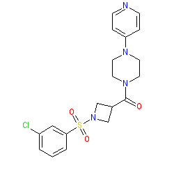 | SMILES | O=C(C1CN(S(=O)(=O)c2cccc(Cl)c2)C1)N1CCN(c2ccncc2)CC1 |
