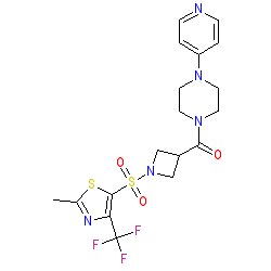 | SMILES | Cc1nc(C(F)(F)F)c(S(=O)(=O)N2CC(C(=O)N3CCN(c4ccncc4)CC3)C2)s1 |