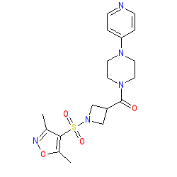 | SMILES | Cc1noc(C)c1S(=O)(=O)N1CC(C(=O)N2CCN(c3ccncc3)CC2)C1 |