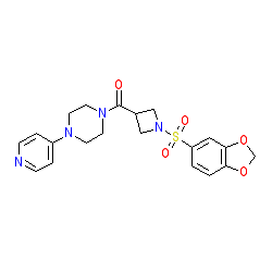 | SMILES | O=C(C1CN(S(=O)(=O)c2ccc3c(c2)OCO3)C1)N1CCN(c2ccncc2)CC1 |