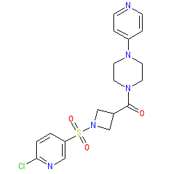 | SMILES | O=C(C1CN(S(=O)(=O)c2ccc(Cl)nc2)C1)N1CCN(c2ccncc2)CC1 |