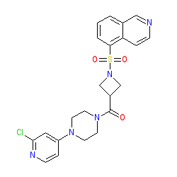 | SMILES | O=C(C1CN(S(=O)(=O)c2cccc3cnccc23)C1)N1CCN(c2ccnc(Cl)c2)CC1 |
