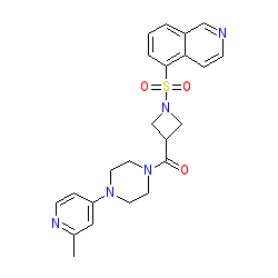 | SMILES | Cc1cc(N2CCN(C(=O)C3CN(S(=O)(=O)c4cccc5cnccc45)C3)CC2)ccn1 |