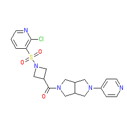 | SMILES | O=C(C1CN(S(=O)(=O)c2cccnc2Cl)C1)N1CC2CN(c3ccncc3)CC2C1 |