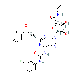 | SMILES | CCNC(=O)[C@H]1O[C@@H](n2cnc3c(NC(=O)Nc4cccc(Cl)c4)nc(C#CC(O)c4ccccc4)nc32)[C@H](O)[C@@H]1O |
