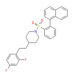 | SMILES | O=S(=O)(c1ccccc1-c1cccc2ccccc12)N1CCC(CCc2ccc(F)cc2F)CC1 |