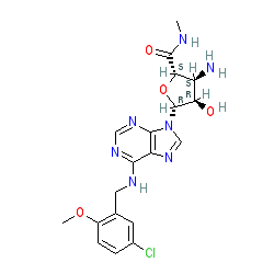 | SMILES | CNC(=O)[C@H]1O[C@@H](n2cnc3c(NCc4cc(Cl)ccc4OC)ncnc32)[C@H](O)[C@@H]1N |
