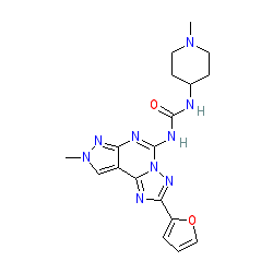 | SMILES | CN1CCC(NC(=O)Nc2nc3nn(C)cc3c3nc(-c4ccco4)nn23)CC1 |