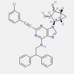 | SMILES | O[C@@H]1[C@H](O)[C@@H]2C[C@@H]2[C@H]1n1cnc2c(NCC(c3ccccc3)c3ccccc3)nc(C#Cc3cccc(Cl)c3)nc21 |
