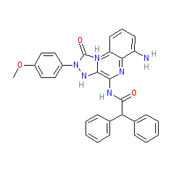 | SMILES | COc1ccc(-n2nc3c(NC(=O)C(c4ccccc4)c4ccccc4)nc4c(N)cccc4n3c2=O)cc1 |