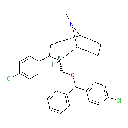 | SMILES | CN1C2CCC1[C@H](COC(c1ccccc1)c1ccc(Cl)cc1)C(c1ccc(Cl)cc1)C2 |