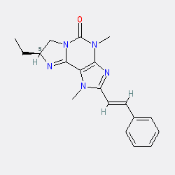 | SMILES | CC[C@H]1CN2C(=O)N(C)c3nc(/C=C/c4ccccc4)n(C)c3C2=N1 |