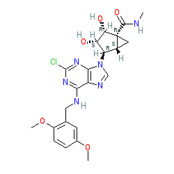 | SMILES | CNC(=O)[C@]12C[C@@H]1[C@@H](n1cnc3c(NCc4cc(OC)ccc4OC)nc(Cl)nc31)[C@H](O)[C@@H]2O |
