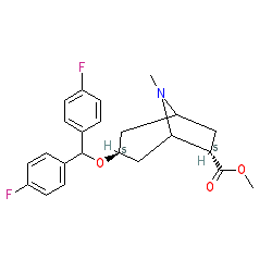 | SMILES | COC(=O)[C@H]1CC2C[C@H](OC(c3ccc(F)cc3)c3ccc(F)cc3)CC1N2C |