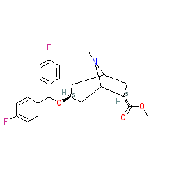 | SMILES | CCOC(=O)[C@H]1CC2C[C@H](OC(c3ccc(F)cc3)c3ccc(F)cc3)CC1N2C |