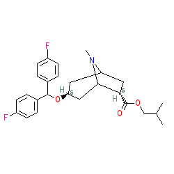 | SMILES | CC(C)COC(=O)[C@H]1CC2C[C@H](OC(c3ccc(F)cc3)c3ccc(F)cc3)CC1N2C |