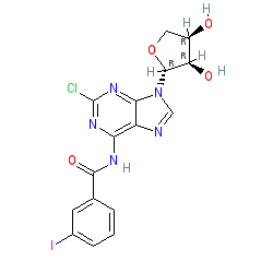 | SMILES | O=C(Nc1nc(Cl)nc2c1ncn2[C@@H]1OC[C@@H](O)[C@H]1O)c1cccc(I)c1 |