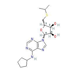 | SMILES | CC(C)SC[C@H]1O[C@@H](n2cnc3c(NC4CCCC4)ncnc32)[C@H](O)[C@@H]1O |