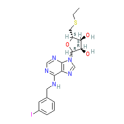 | SMILES | CCSC[C@H]1O[C@@H](n2cnc3c(NCc4cccc(I)c4)ncnc32)[C@H](O)[C@@H]1O |