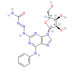 | SMILES | NC(=O)/N=N/Nc1nc(Nc2ccccc2)c2ncn([C@@H]3O[C@H](CO)[C@@H](O)[C@H]3O)c2n1 |