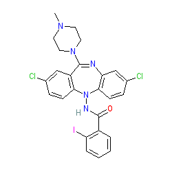 | SMILES | CN1CCN(C2=Nc3cc(Cl)ccc3N(NC(=O)c3ccccc3I)c3ccc(Cl)cc32)CC1 |