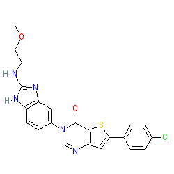 SMILES | COCCNc1nc2cc(-n3cnc4cc(-c5ccc(Cl)cc5)sc4c3=O)ccc2[nH]1 |