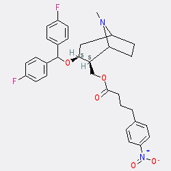 | SMILES | CN1C2CCC1[C@@H](COC(=O)CCCc1ccc([N+](=O)[O-])cc1)[C@@H](OC(c1ccc(F)cc1)c1ccc(F)cc1)C2 |