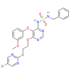SMILES | COc1cccc(Oc2c(NS(=O)(=O)NCc3ccccc3)ncnc2OCCOc2ncc(Br)cn2)c1 |