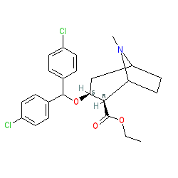 | SMILES | CCOC(=O)[C@@H]1C2CCC(C[C@@H]1OC(c1ccc(Cl)cc1)c1ccc(Cl)cc1)N2C |