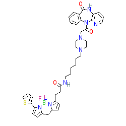 | SMILES | O=C(CCC1=[N+]2C(C=C1)Cc1ccc(-c3cccs3)n1[B-]2(F)F)NCCCCCCN1CCN(CC(=O)N2c3ccccc3C(=O)Nc3cccnc32)CC1 |