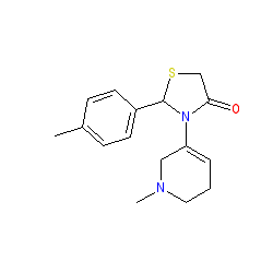 | SMILES | Cc1ccc(C2SCC(=O)N2C2=CCCN(C)C2)cc1 |
