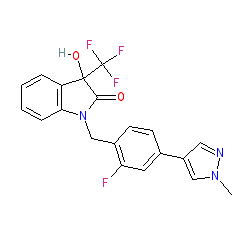 | SMILES | Cn1cc(-c2ccc(CN3C(=O)C(O)(C(F)(F)F)c4ccccc43)c(F)c2)cn1 |