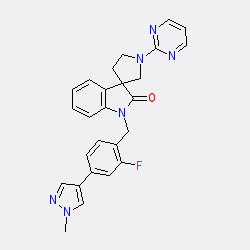 | SMILES | Cn1cc(-c2ccc(CN3C(=O)C4(CCN(c5ncccn5)C4)c4ccccc43)c(F)c2)cn1 |
