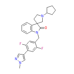 | SMILES | Cn1cc(-c2cc(F)c(CN3C(=O)C4(CCN(C5CCCC5)C4)c4ccccc43)cc2F)cn1 |