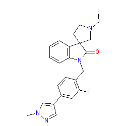 | SMILES | CCN1CCC2(C1)C(=O)N(Cc1ccc(-c3cnn(C)c3)cc1F)c1ccccc12 |